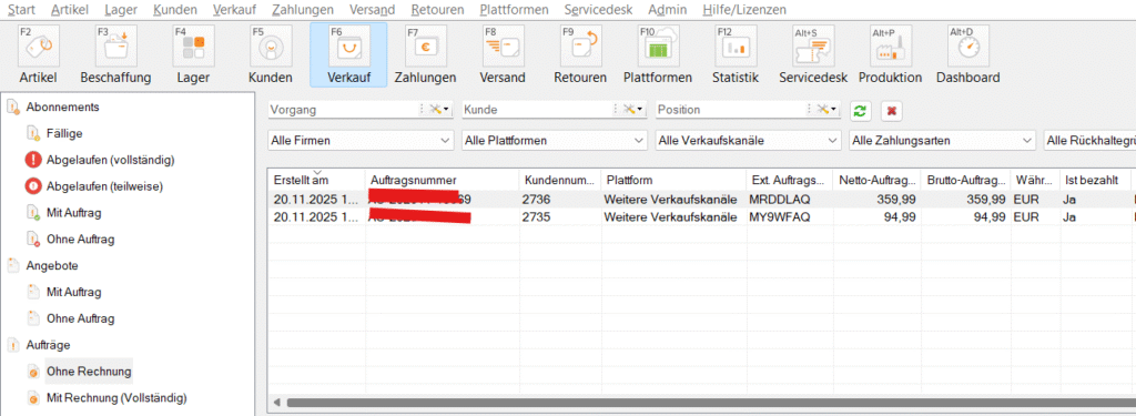 1.0 Verkauf 1.1 Ohne Rechnung